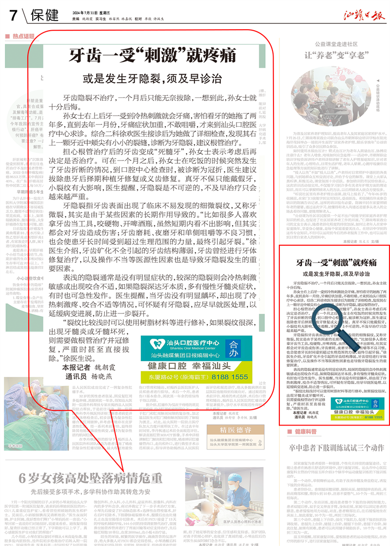 汕頭日報 | 牙齒一受“刺激”就疼痛 或是發(fā)生牙隱裂,須及早診治