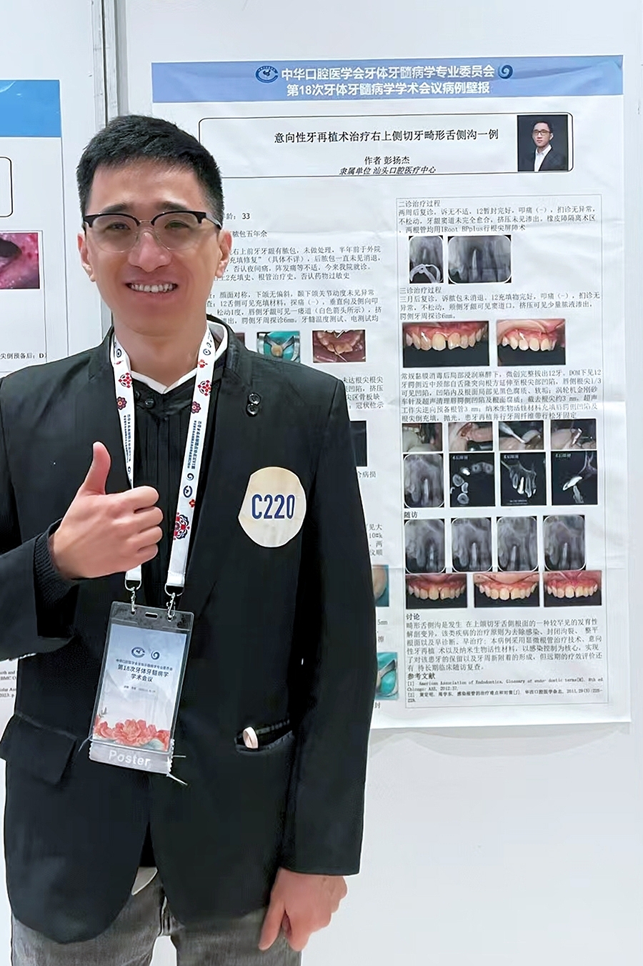 汕頭口腔醫(yī)療中心特需門診口內(nèi)專家、綜合二科主任彭揚杰攜病例壁報《意向性牙再植術(shù)治療右上側(cè)切牙畸形舌側(cè)溝一例》亮相大會,獲廣泛關(guān)注。