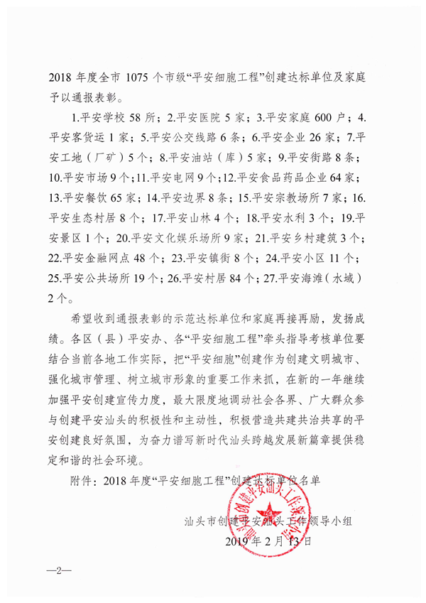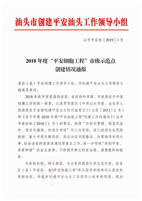 日前,汕頭市創(chuàng)建平安汕頭工作領導小組印發(fā)《2018年度“平安細胞工程”市級示范點創(chuàng)建情況通報》,全市共有5家醫(yī)療機構被評為“平安醫(yī)院市級示范點”,頭口腔醫(yī)療中心喜獲此項殊榮,受到通報表彰。