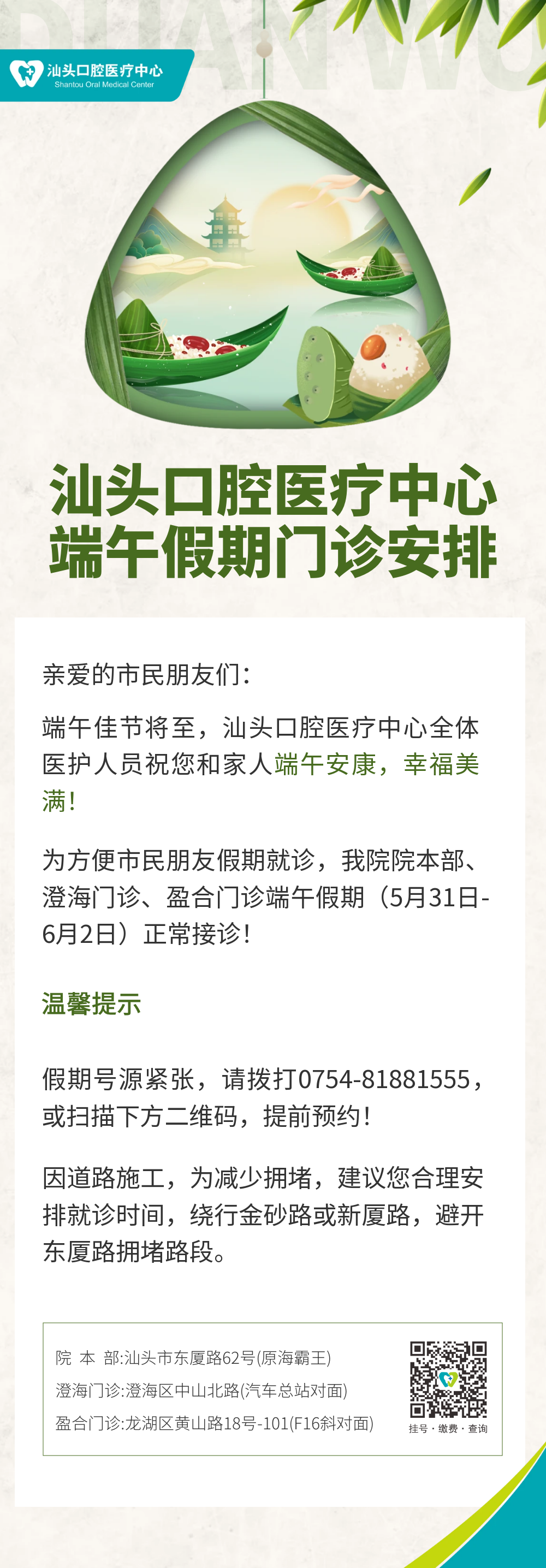 汕頭口腔醫(yī)療中心2025年端午假期門診安排