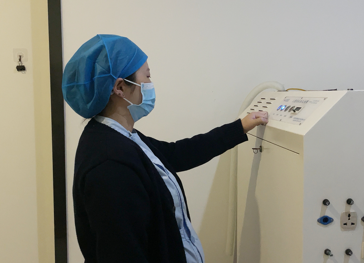 雖然懷著身孕,但她依舊健步如飛,事無(wú)巨細(xì),從紫外線燈在非使用時(shí)段是否被妥善收納,以避免紫外線泄漏對(duì)人員造成傷害;到垃圾桶擺放位置是否合理,既方便醫(yī)護(hù)人員丟棄醫(yī)療廢物,又不會(huì)影響患者走動(dòng),造成二次污染,她都一一妥善安排。