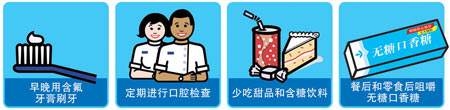 我們?nèi)粘3缘拿?、面、蔬菜、水果里都會有糖分,每次進食后,牙菌斑中的細菌和這些糖分或淀粉發(fā)生化學作用,產(chǎn)生腐蝕牙齒的酸性物質(zhì)。