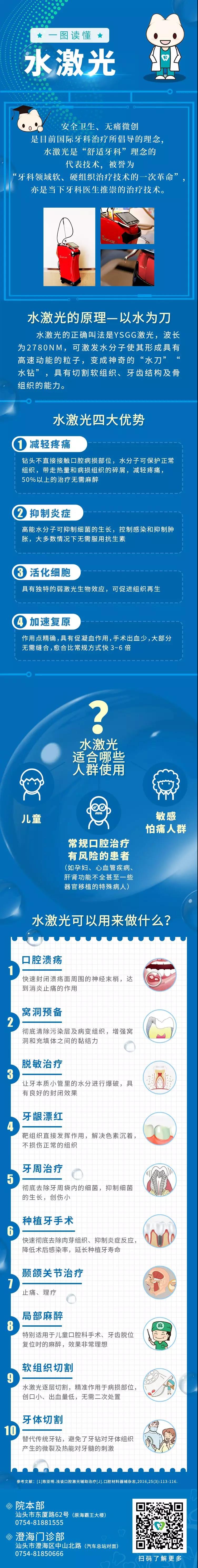 如今,舒適化治療已經(jīng)是口腔醫(yī)療發(fā)展的新方向。我院引進(jìn)了“舒適牙科”的代表技術(shù)——水激光,讓患者能夠享受到安全、舒適、無(wú)痛的口腔醫(yī)療服務(wù)。水激光的原理是什么,它又能在哪些項(xiàng)目上為患者提供幫助呢?汕頭口腔醫(yī)療中心帶你一圖讀懂水激光技術(shù)↓↓↓
