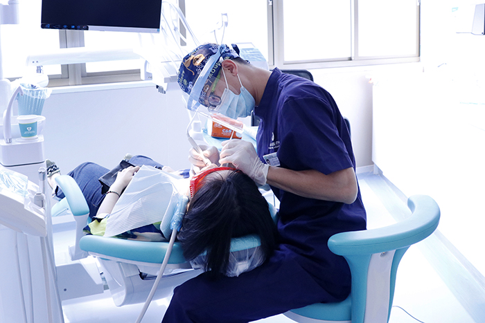 許多患者有抽煙、喝茶或經(jīng)常吃巧克力等食物的習(xí)慣,若是不及時(shí)進(jìn)行口腔清潔,長(zhǎng)久之下就容易出現(xiàn)色素沉著。這種情況可以用噴砂聯(lián)合拋光的方式,將外源性色素沉著去除。