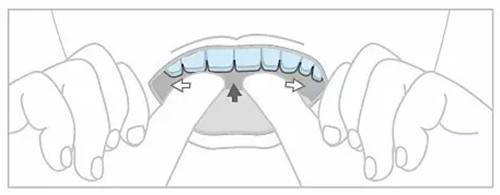 無明顯錯位的,先壓前牙,再往兩側(cè)。壓好后,上下頜可咬緊使之完全就位,與牙面充分貼合。
