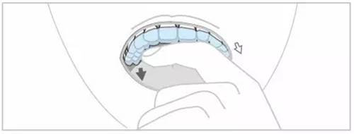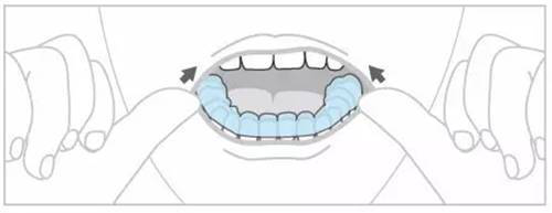 錯位明顯的:從錯位一側(cè)先戴,從后往前再到另一側(cè);如局部出現(xiàn)稍不貼合的情況,可用該部位咬住醫(yī)用棉卷或咬膠,輔助矯治器就位。