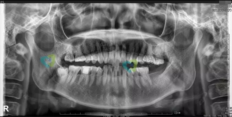 口腔全景牙片,是通過一次拍攝將全口牙齒和頜骨的影像清晰的顯示在一張X光片上,可以清晰、完整的顯示上頜骨、下頜骨全貌,上下頜牙列情況,牙槽骨情況,能夠清晰顯示上頜竇腔、竇壁、竇底情況以及顳頜關(guān)節(jié)情況,并對(duì)頜骨周圍疾病的診斷提供準(zhǔn)確有效的幫助。
