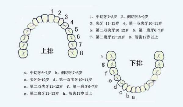 換牙也是一定有規(guī)律的,簡單來說就是“左右對稱,先下后上”,這規(guī)律是對于同名牙而言的。寶寶_先長出的恒牙到底是哪顆,有兩種不同說法,一種是說,通常6歲左右長出的第一個恒磨牙是緊靠_后一個乳磨牙長出來的,叫做六齡磨牙,比下中切牙的萌出稍早或同時。另一種說法是寶寶先換的是下排正中間的兩顆門牙,每個寶寶的情況可能會有不同。
