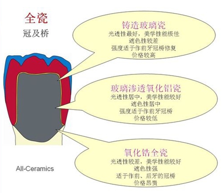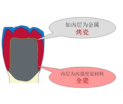 按照底層材料不同,可以分為全瓷冠烤瓷冠
